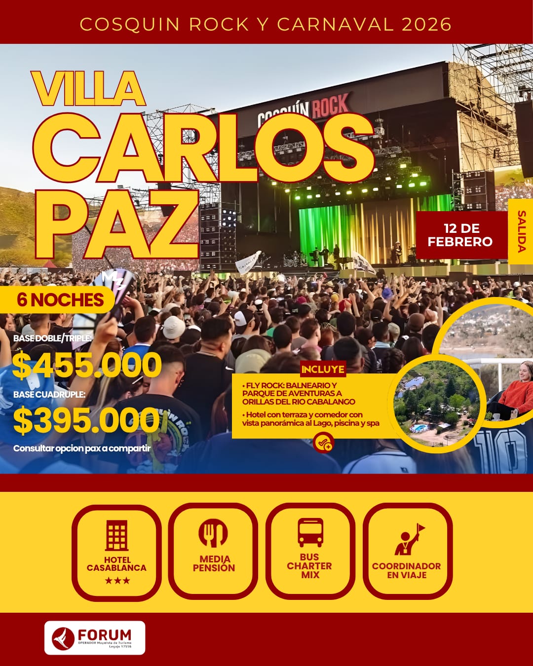 VILLA CARLOS PAZ COSQUIN ROCK Y CARNAVAL - FEBRERO 12 2026