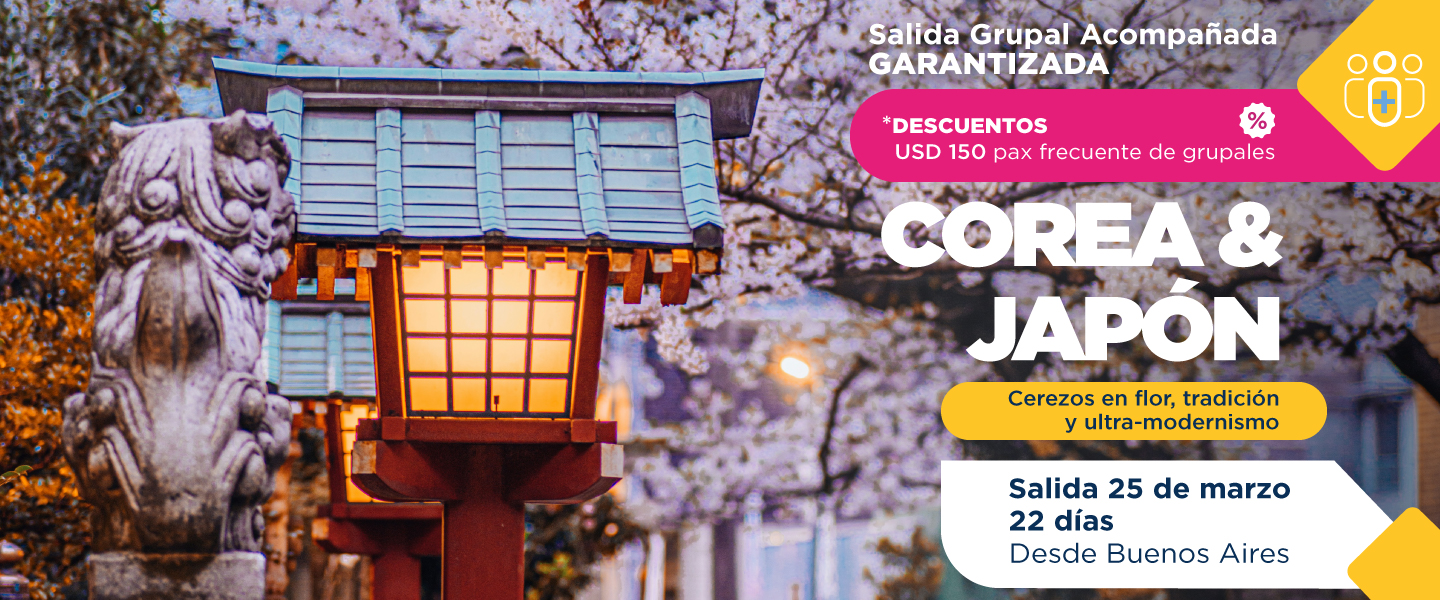 EL PROGRAMA INCLUYE Aéreo internacional con Lufthansa ruta Buenos Aires / (x)Frankfurt / Seúl // Tokyo / (x)Frankfurt / Buenos Aires. Vuelo interno Busan/Osaka Todos los vuelos son en clase económica. Incluyen una valija para despachar en bodega. Traslados de llegada y salida en cada destino en vehÃculos privados. 18 noches de alojamiento con régimen de desayuno: 3 noches en Seúl, 1 noche en Jeonju, 1 noche en Gyeongju, 3 noches en Busan, 2 noches en Osaka, 3 noches en Kyoto, 1 noche en Gifu, 1 noche en Kanazawa y 3 noches en Tokyo. 9 comidas incluidas: 8 almuerzos y 1 cena. Visitas con guÃa local de habla hispana según detalle del itinerario. Excursiones: HIROSHIMA y HAKONE Kit de viaje. Seguro de asistencia médica Universal Assistance Excelence Plus. Tour leader acompañante desde Argentina con mÃnimo 10 pasajeros.Observaciones