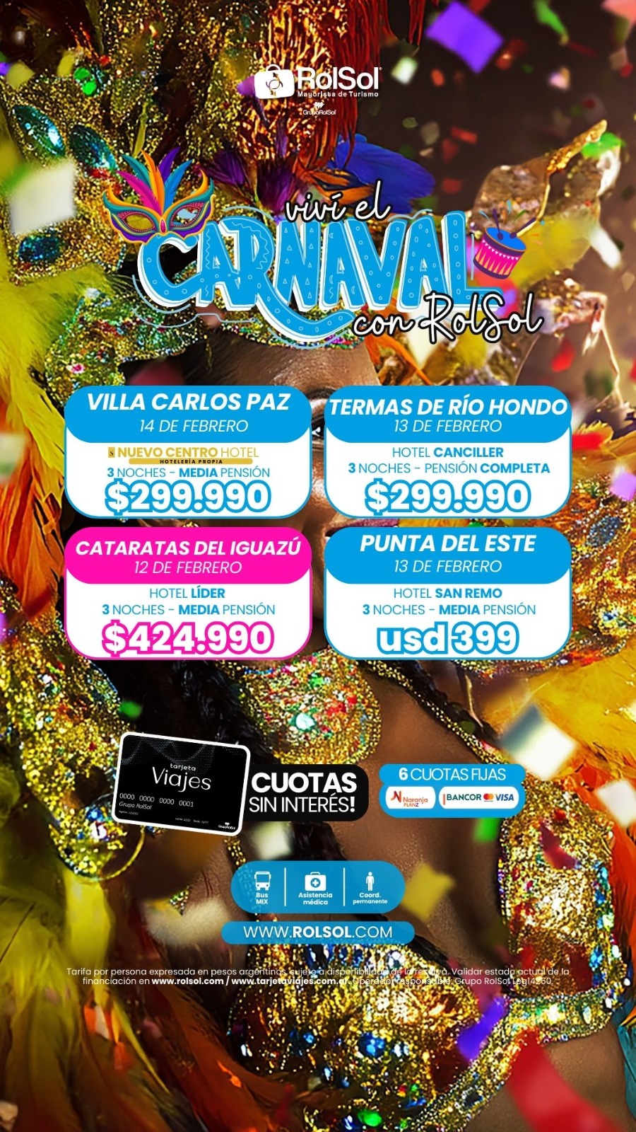 CARNAVAL EN ARGENTINA Y URUGUAY - FEBRERO 12 , 13 Y 14 2026