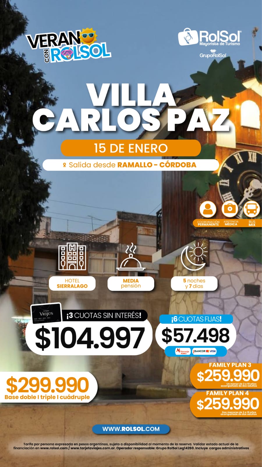 VILLA CARLOS PAZ - ENERO 15 Y 30 2026