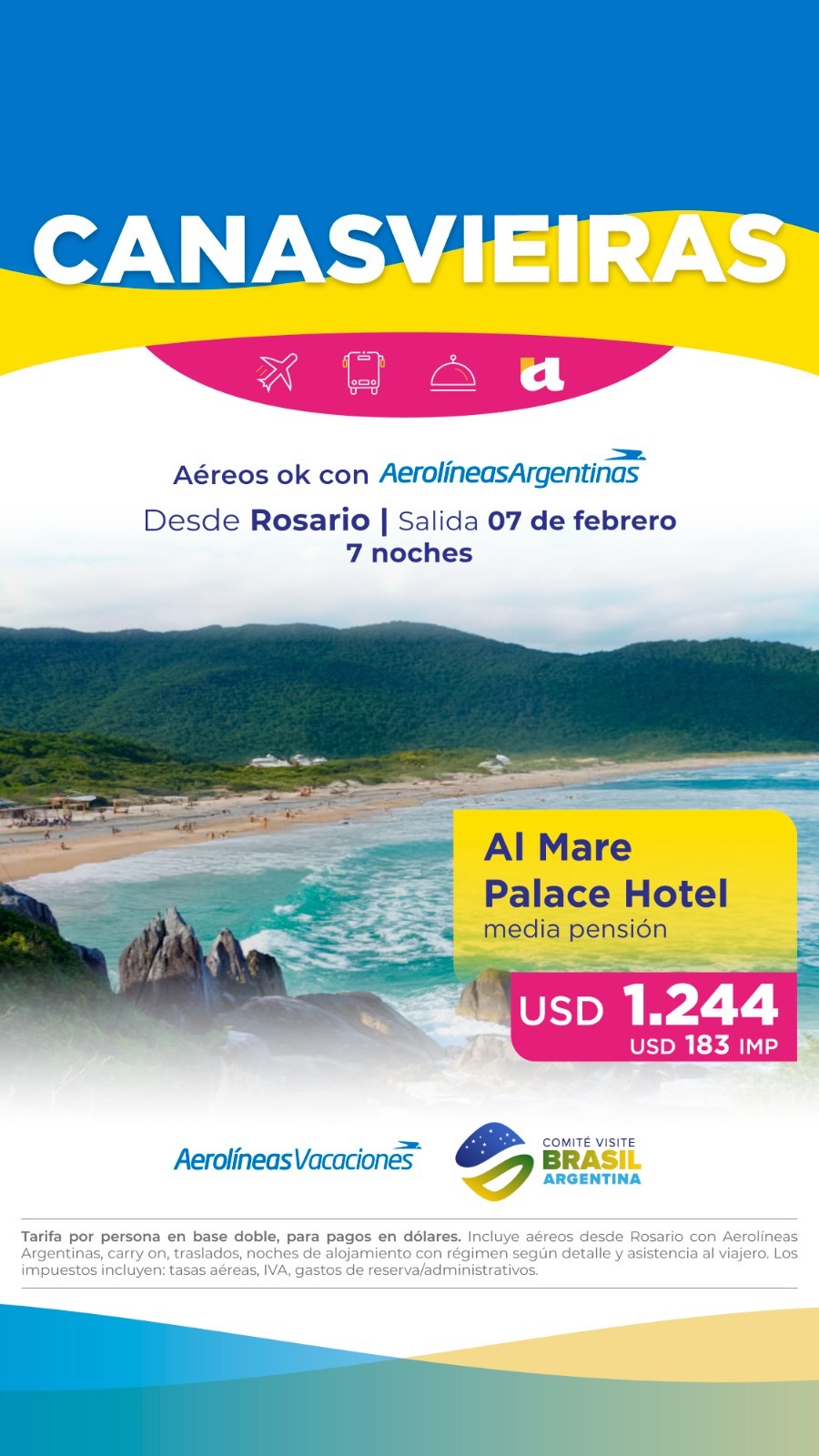 TODAS LAS TARIFAS SON POR PERSONA, BASE DOBLE (SALVO ACLARACIÓN EN CONTRARIO) Y SUJETAS A CAMBIOS SIN PREVIO AVISO.
