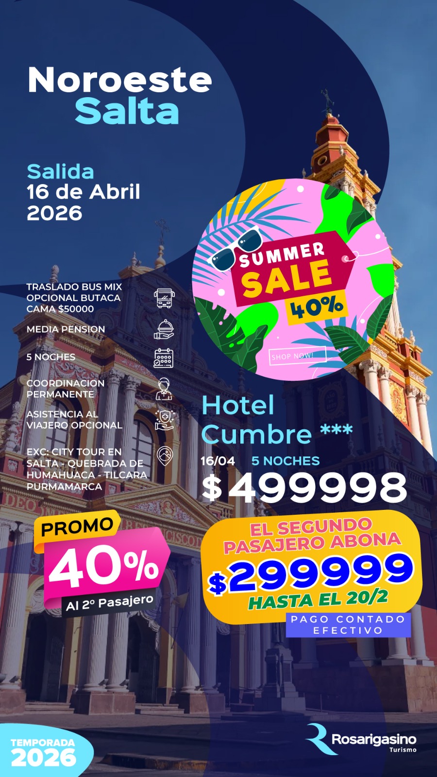 TODAS LAS TARIFAS SON POR PERSONA, BASE DOBLE (SALVO ACLARACIÓN EN CONTRARIO) Y SUJETAS A CAMBIOS SIN PREVIO AVISO.
