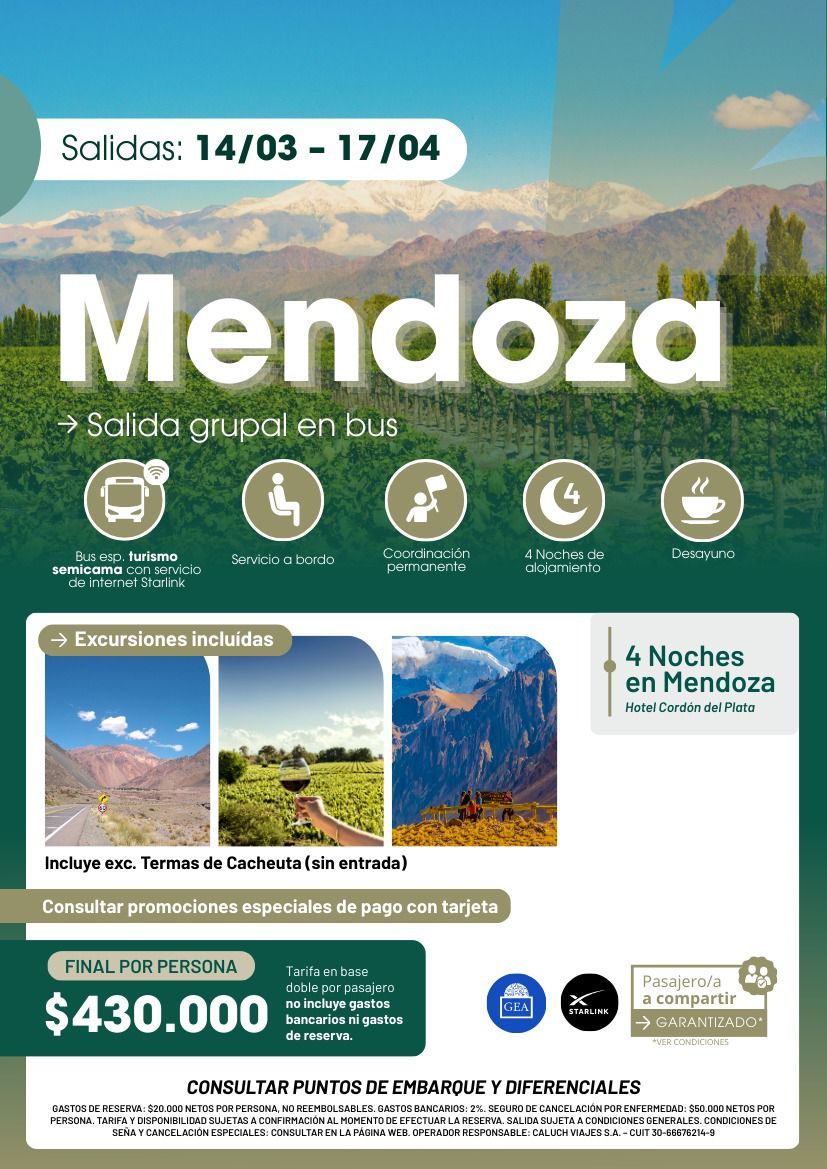 MENDOZA - MARZO 14 Y ABRIL 17 2026