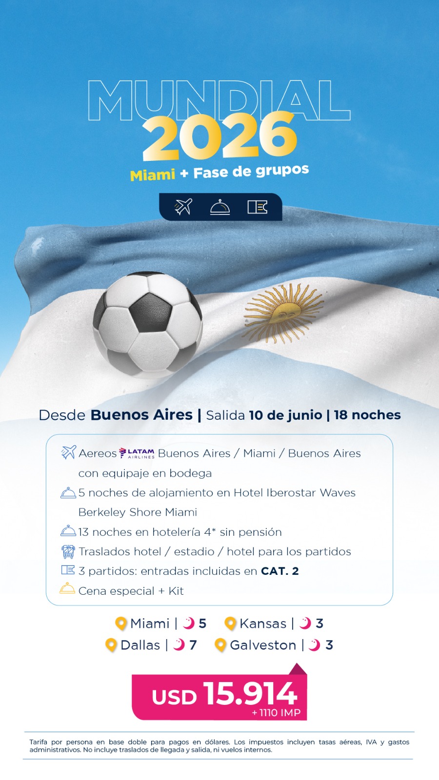 TODAS LAS TARIFAS SON POR PERSONA, BASE DOBLE (SALVO ACLARACIÓN EN CONTRARIO) Y SUJETAS A CAMBIOS SIN PREVIO AVISO.