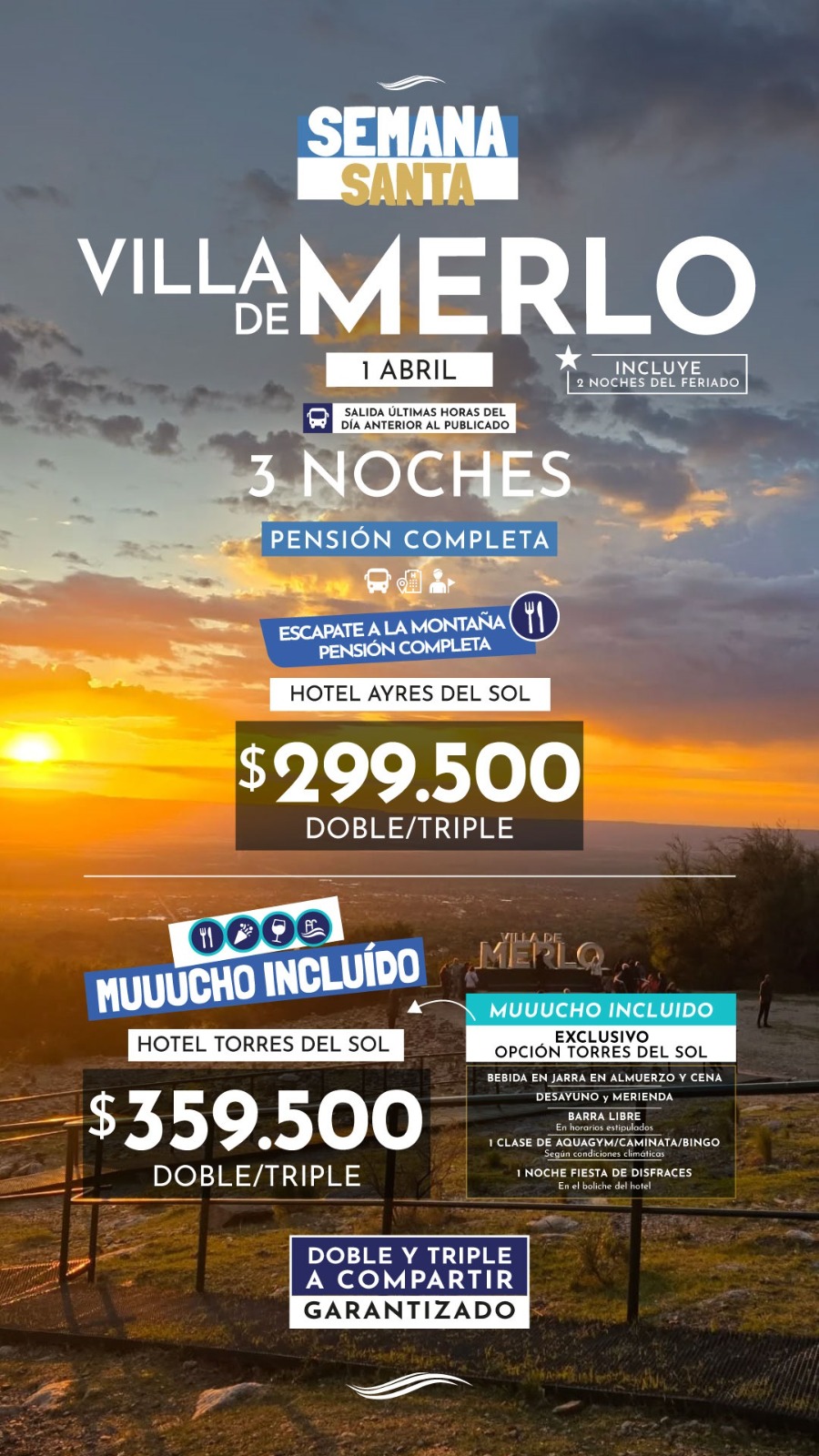 TODAS LAS TARIFAS SON POR PERSONA, BASE DOBLE (SALVO ACLARACIÓN EN CONTRARIO) Y SUJETAS A CAMBIOS SIN PREVIO AVISO.