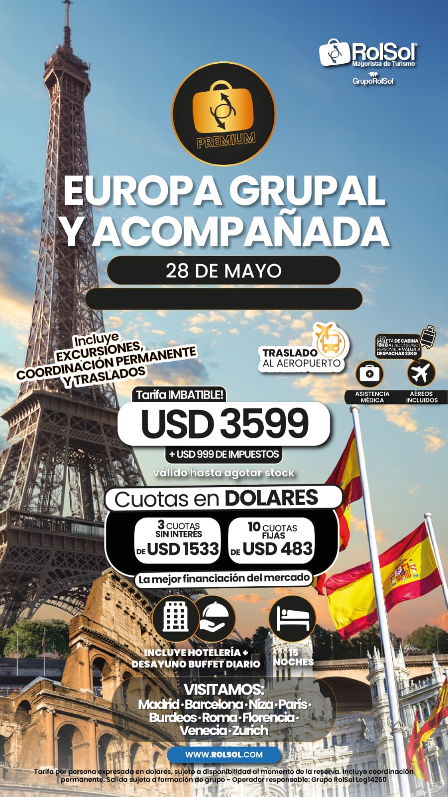 EUROPA GRUPAL EN CUOTAS - MAYO 28 Y OCTUBRE 01 2026