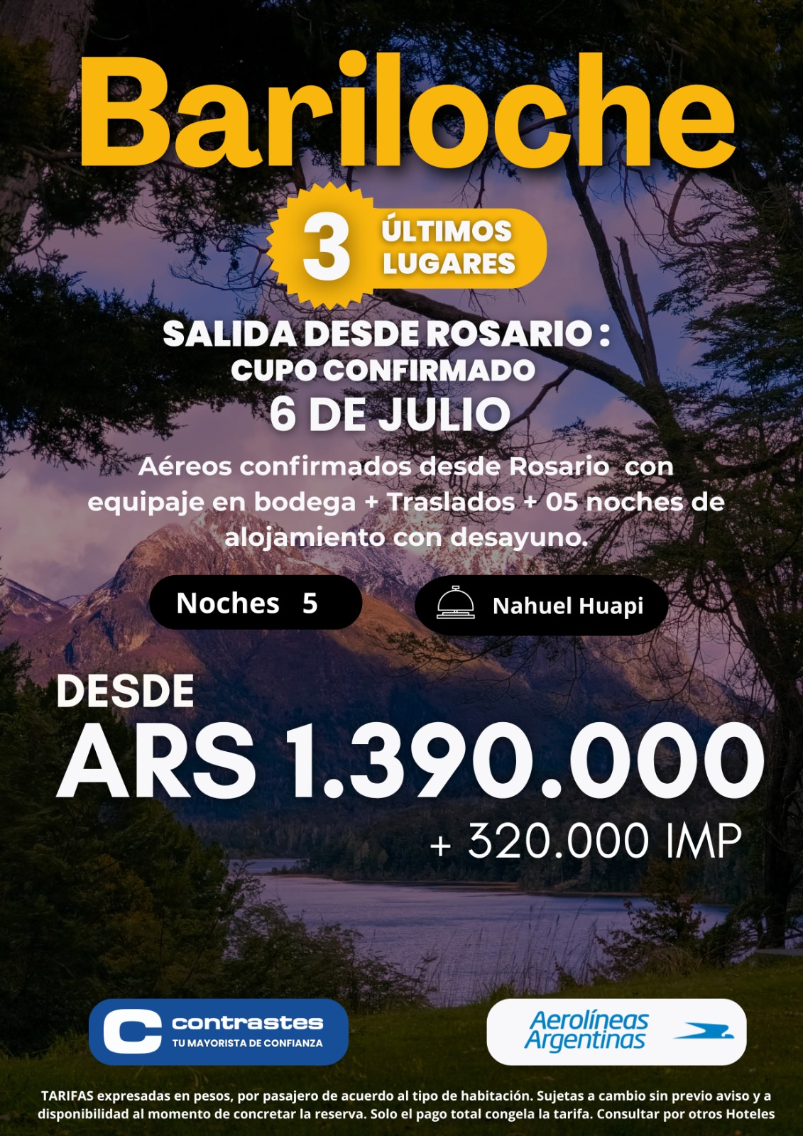 BARILOCHE desde Rosario ULTIMOS LUGARES - JULIO 06 2026