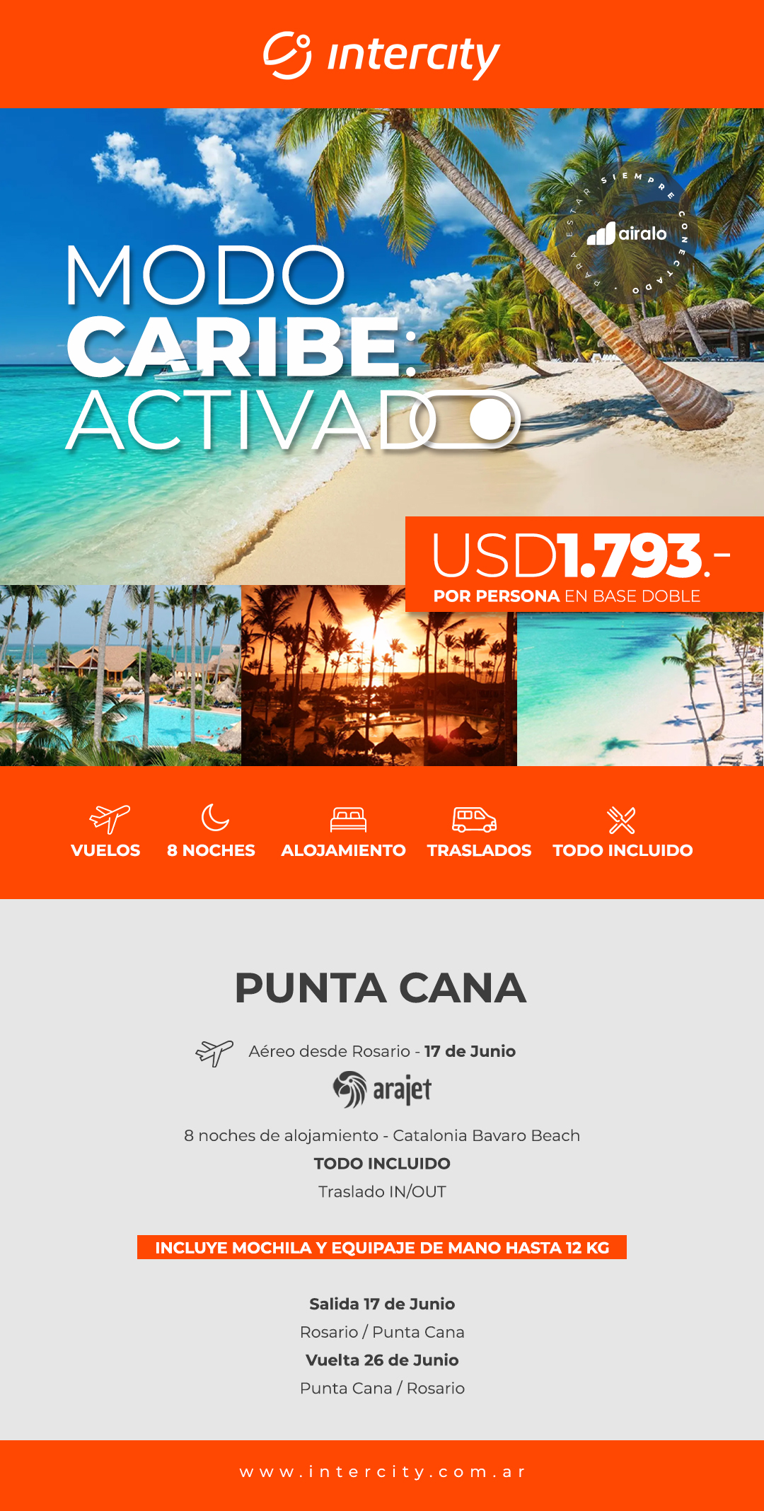 PUNTA CANA DESDE ROSARIO - JUNIO 17 2026