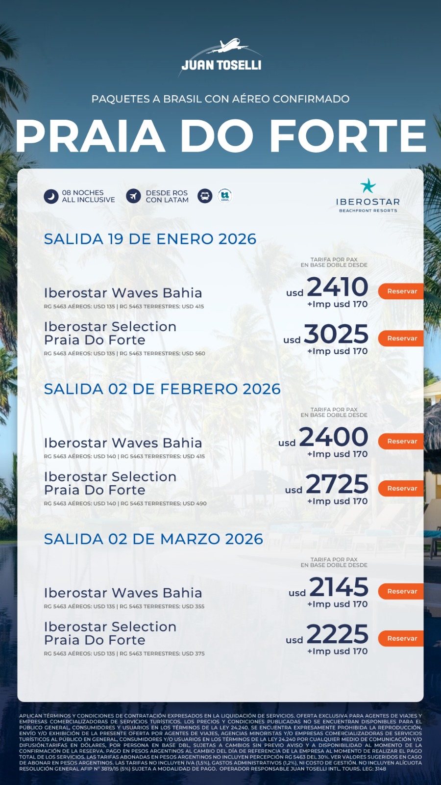 TODAS LAS TARIFAS SON POR PERSONA, BASE DOBLE (SALVO ACLARACIÓN EN CONTRARIO) Y SUJETAS A CAMBIOS SIN PREVIO AVISO.