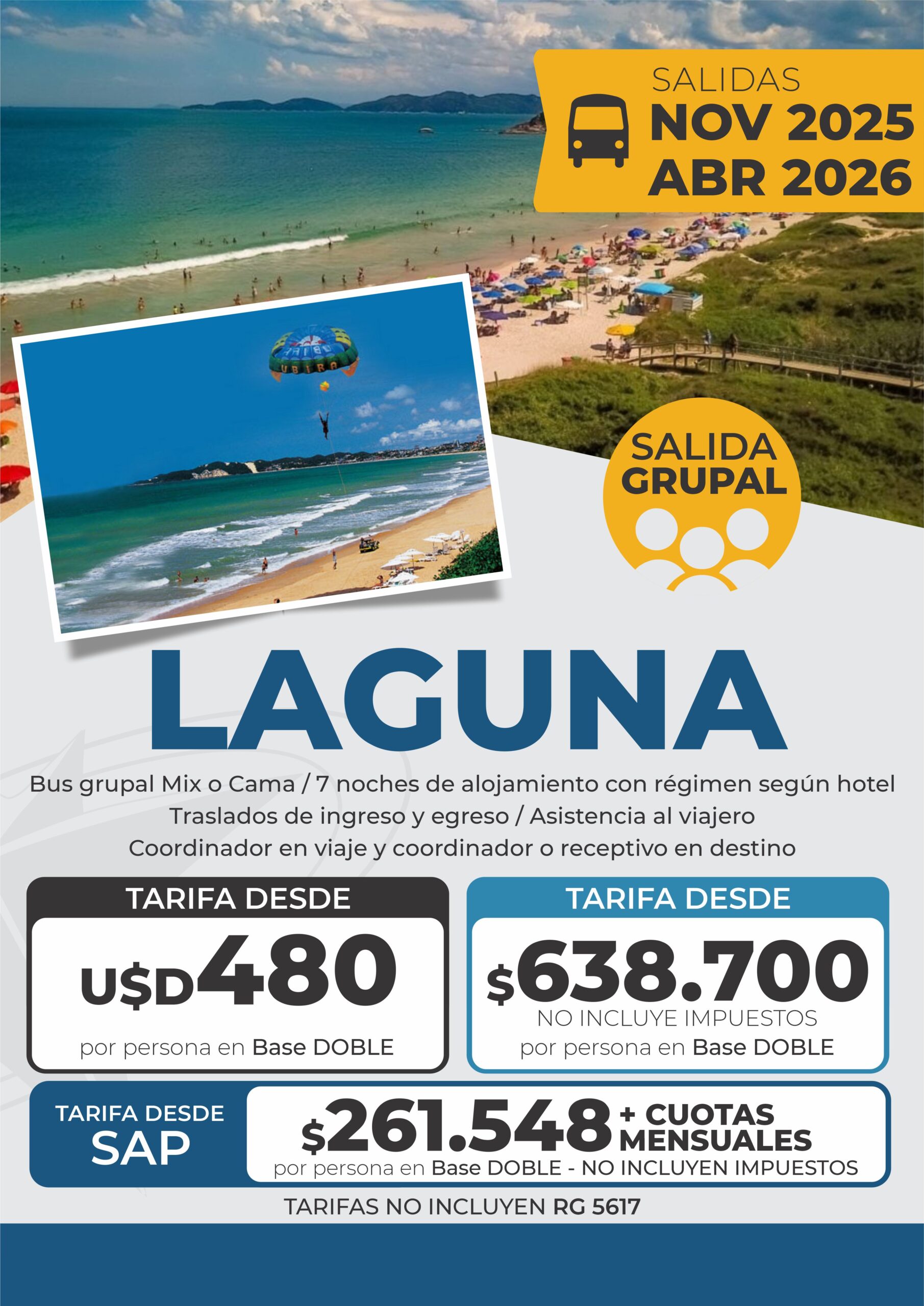 TODAS LAS TARIFAS SON POR PERSONA, BASE DOBLE (SALVO ACLARACIÓN EN CONTRARIO) Y SUJETAS A CAMBIOS SIN PREVIO AVISO.