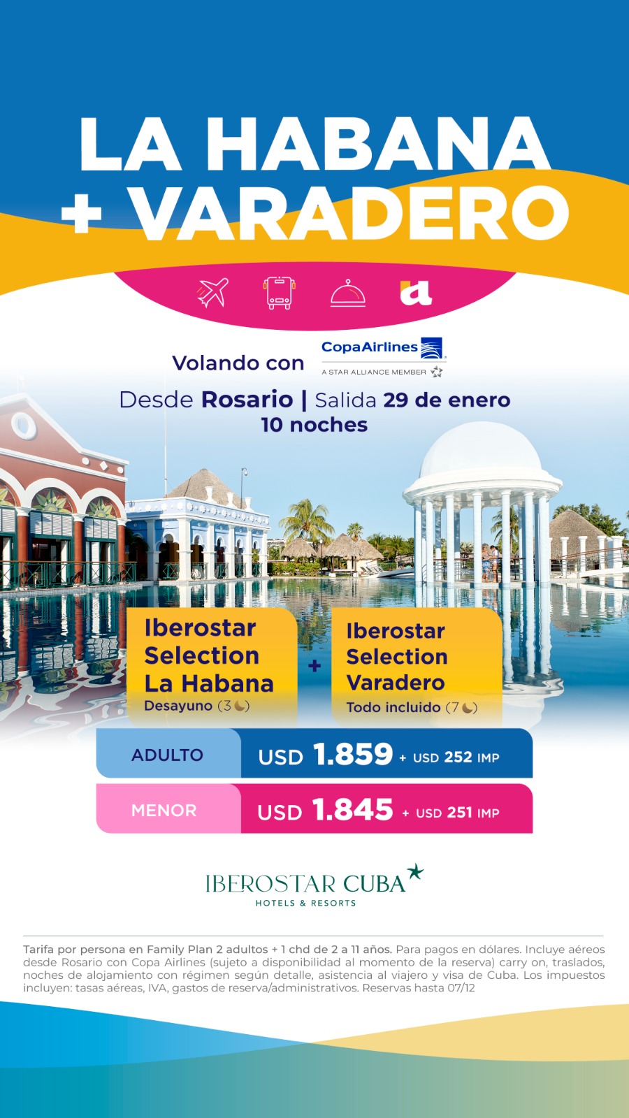 LA HABANA Y VARADERO DESDE ROSARIO- ENERO 29 2026