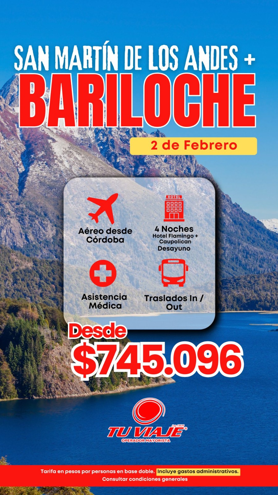 SAN MARTIN Y BARILOCHE DESDE CORDOBA -FEBRERO 2 2026