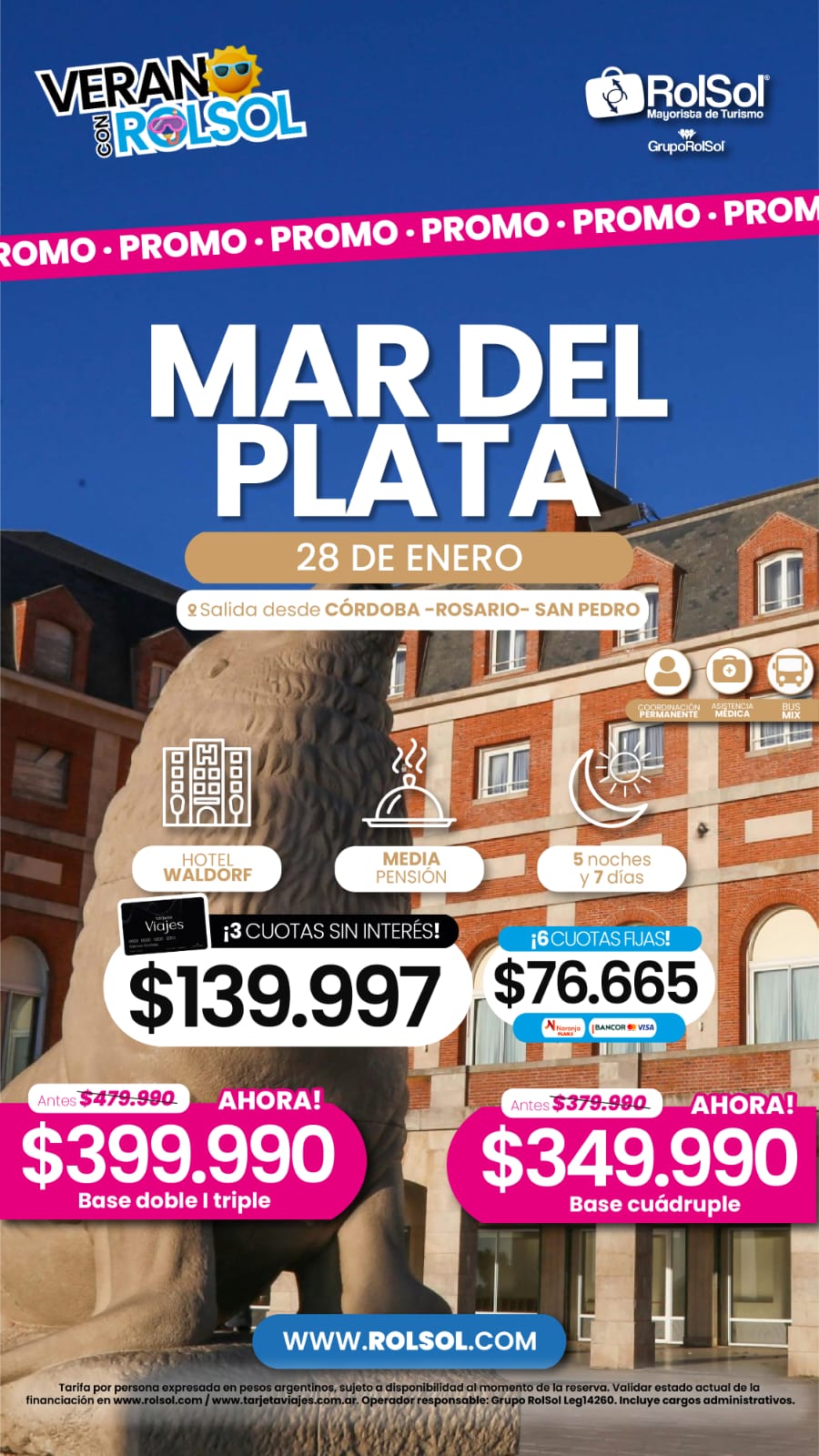 TODAS LAS TARIFAS SON POR PERSONA, BASE DOBLE (SALVO ACLARACIÓN EN CONTRARIO) Y SUJETAS A CAMBIOS SIN PREVIO AVISO.