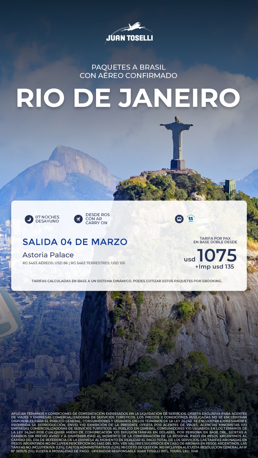 TODAS LAS TARIFAS SON POR PERSONA, BASE DOBLE (SALVO ACLARACIÓN EN CONTRARIO) Y SUJETAS A CAMBIOS SIN PREVIO AVISO.