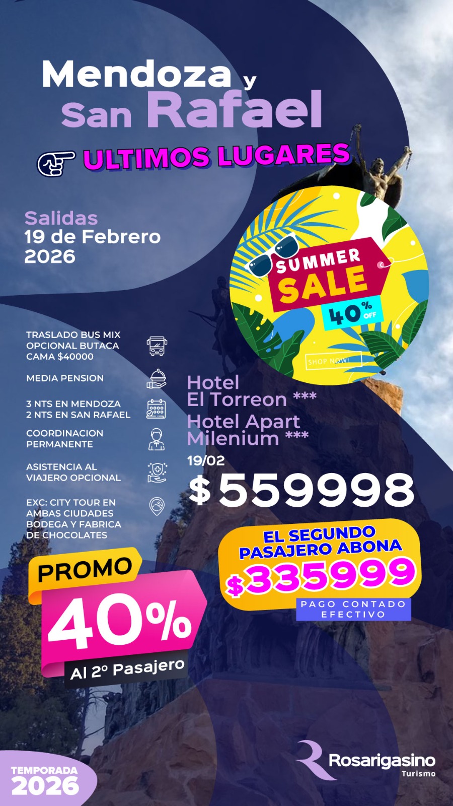 TODAS LAS TARIFAS SON POR PERSONA, BASE DOBLE (SALVO ACLARACIÓN EN CONTRARIO) Y SUJETAS A CAMBIOS SIN PREVIO AVISO.