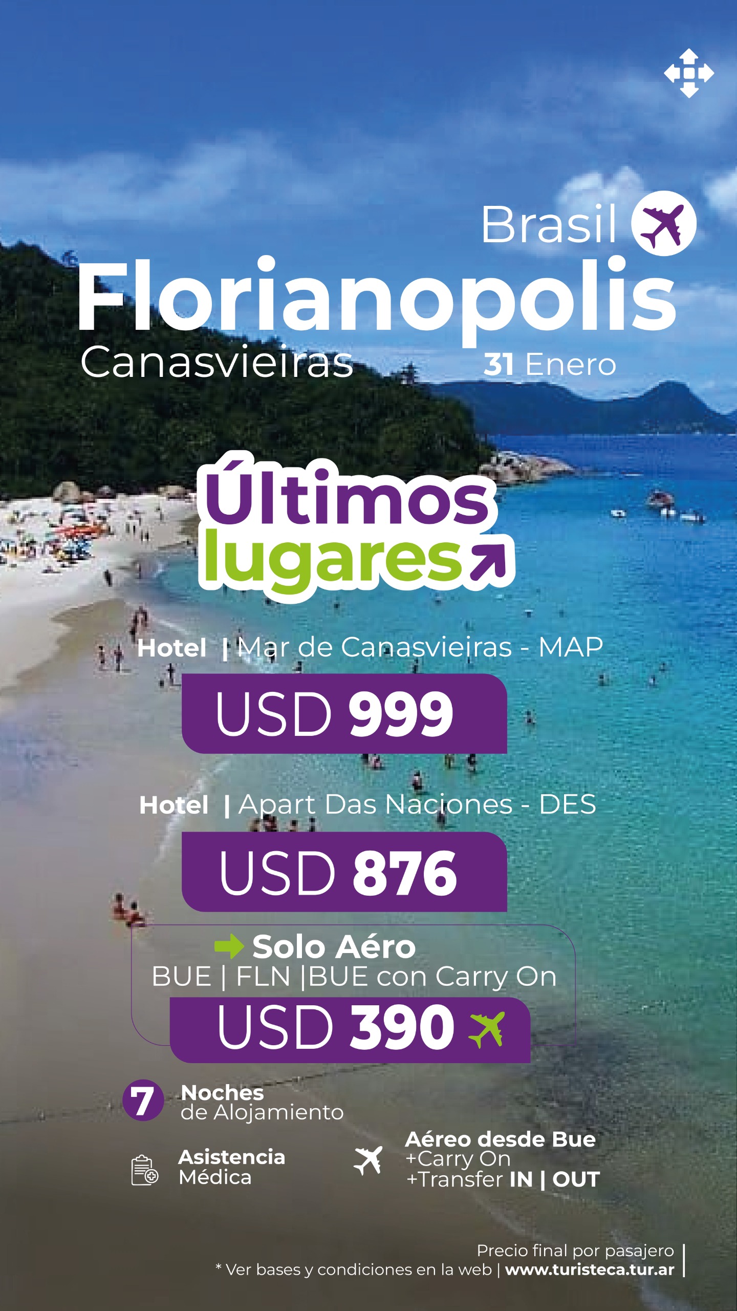 TODAS LAS TARIFAS SON POR PERSONA, BASE DOBLE (SALVO ACLARACIÓN EN CONTRARIO) Y SUJETAS A CAMBIOS SIN PREVIO AVISO.
