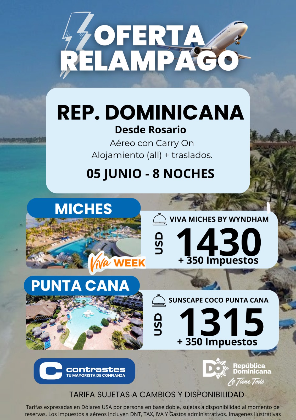 TODAS LAS TARIFAS SON POR PERSONA, BASE DOBLE (SALVO ACLARACIÓN EN CONTRARIO) Y SUJETAS A CAMBIOS SIN PREVIO AVISO.