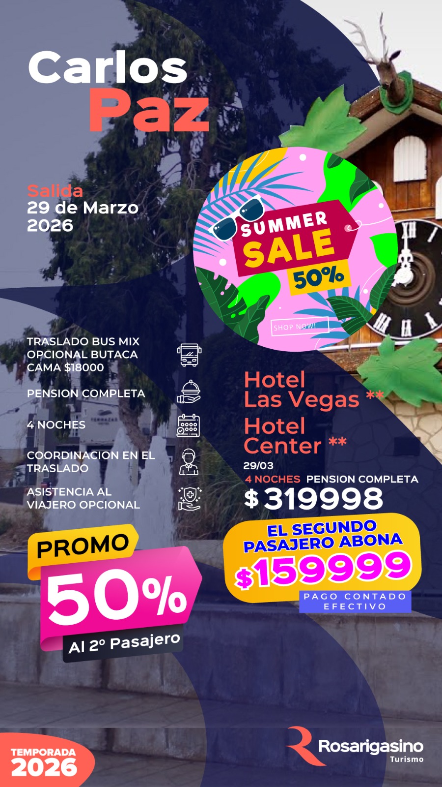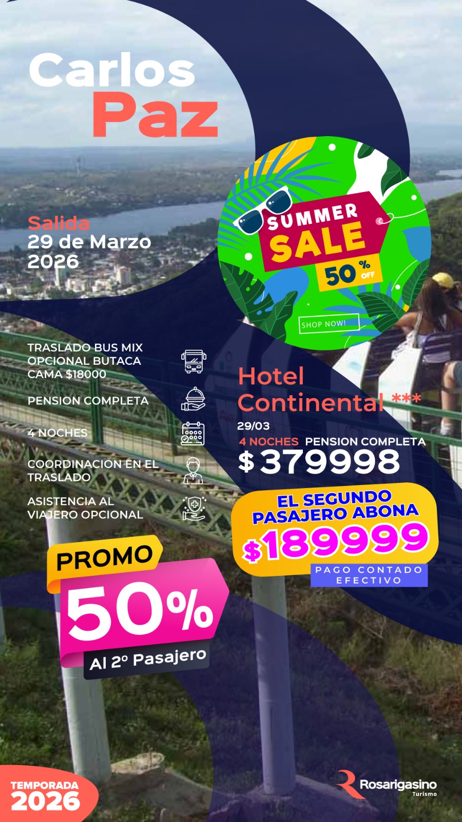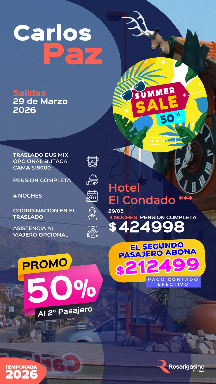 CARLOS PAZ - MARZO 29 2026 - 50% DESC AL 2 PAX