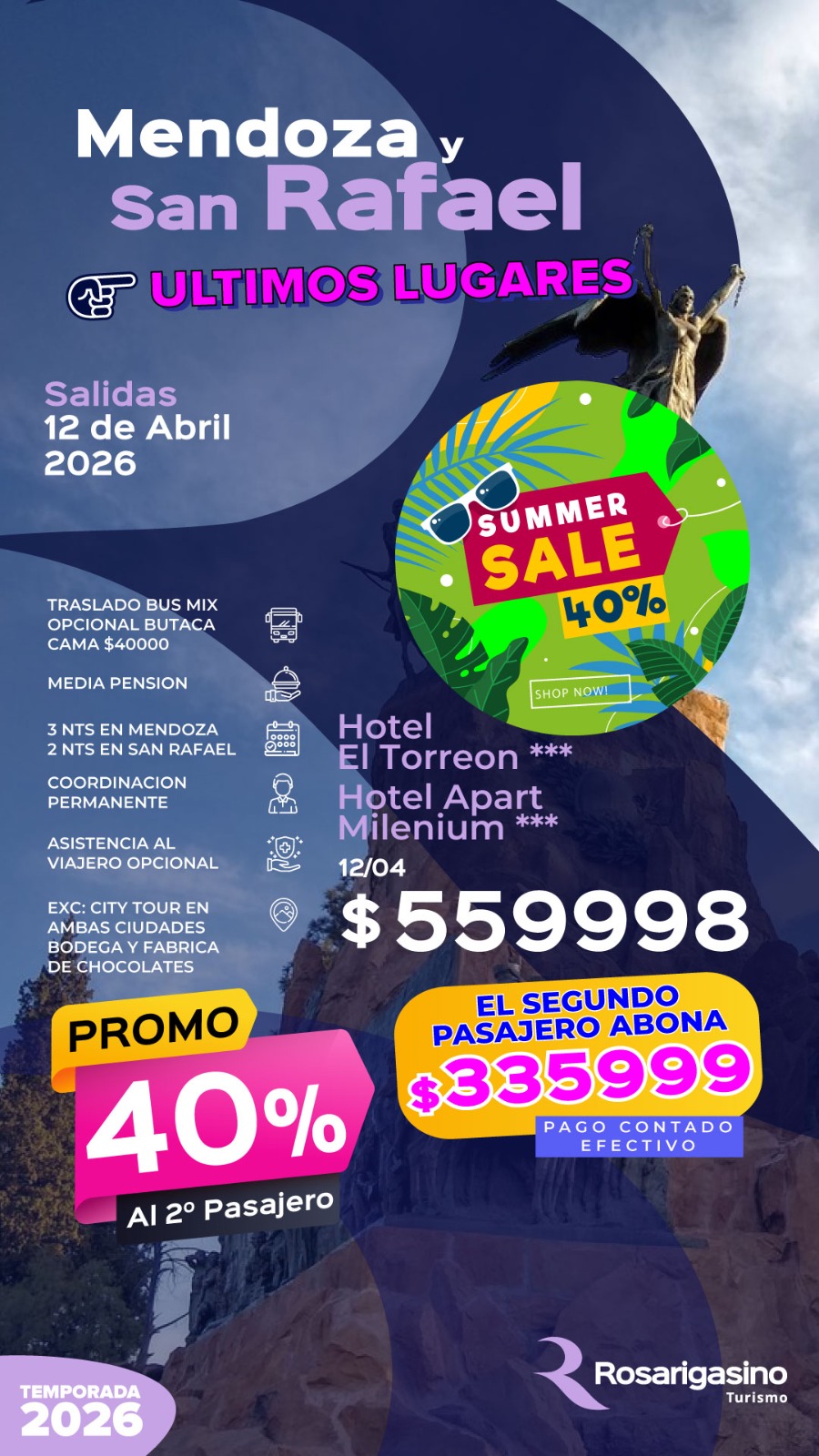 MENDOZA Y SAN RAFAEL - ABRIL 12 - 40% DESC 2 PAX