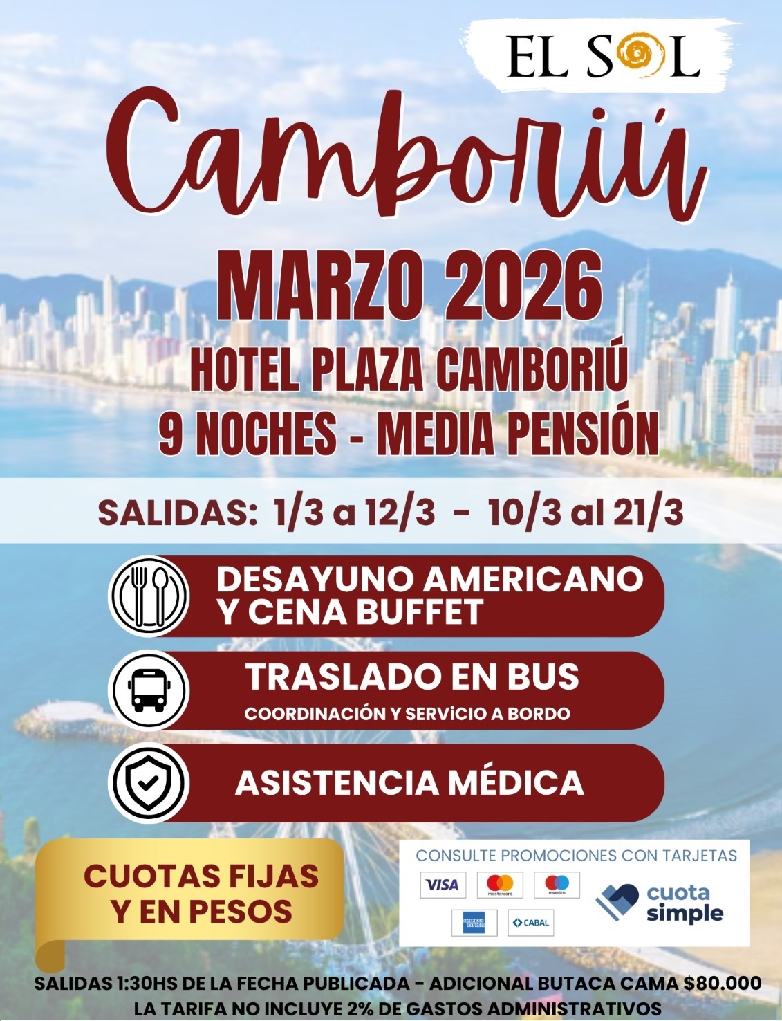 TODAS LAS TARIFAS SON POR PERSONA, BASE DOBLE (SALVO ACLARACIÓN EN CONTRARIO) Y SUJETAS A CAMBIOS SIN PREVIO AVISO.