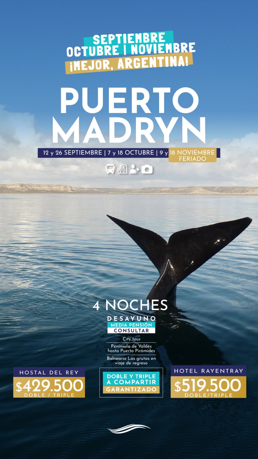 âï¸ Incluye city tour por Madryn + PenÃnsula hasta Puerto Pirámides + visita a Las Grutas en viaje de regreso.----