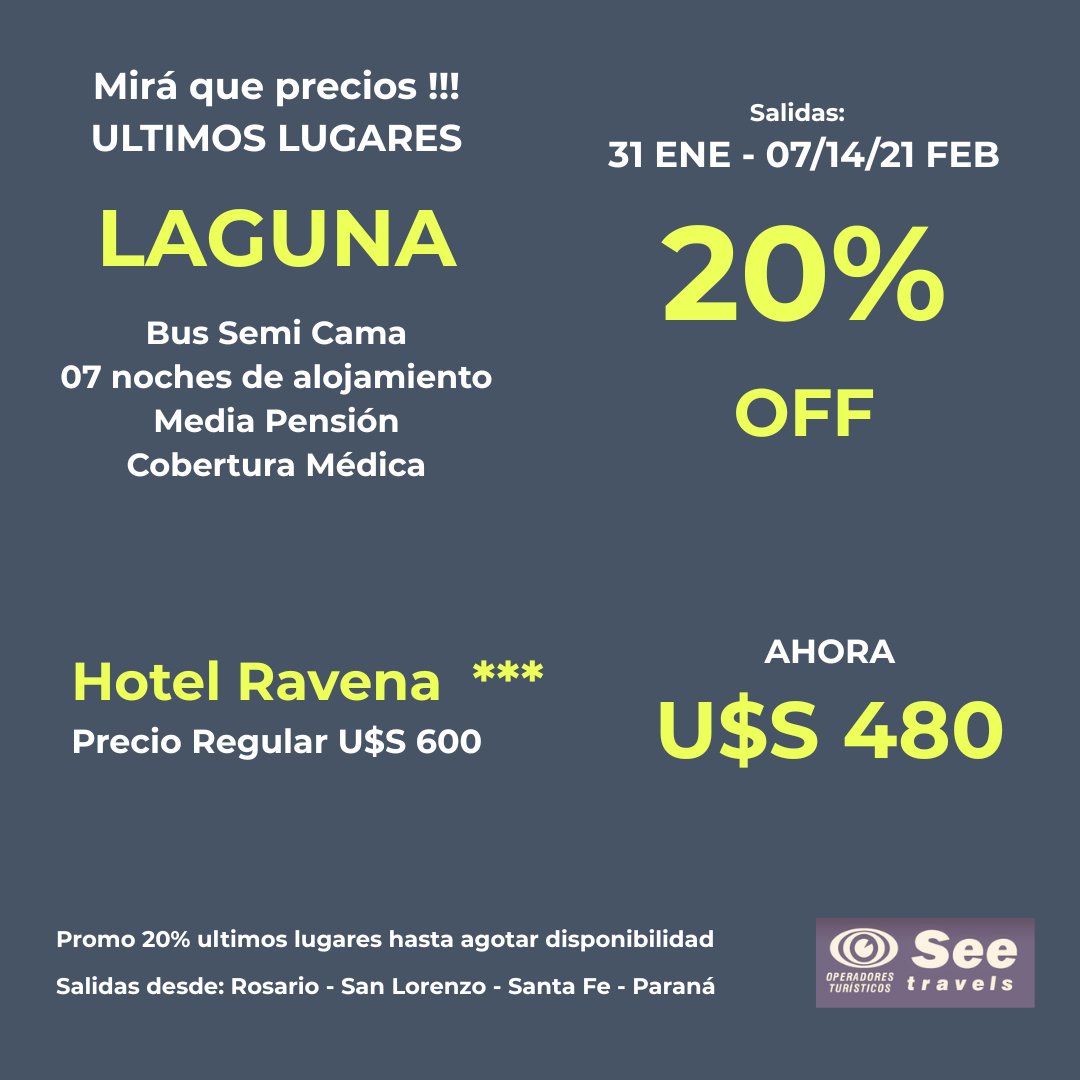 TODAS LAS TARIFAS SON POR PERSONA, BASE DOBLE (SALVO ACLARACIÓN EN CONTRARIO) Y SUJETAS A CAMBIOS SIN PREVIO AVISO.