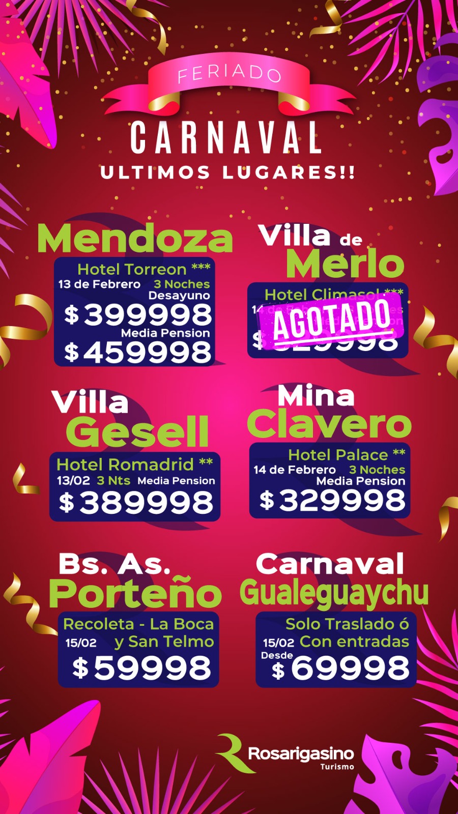 MENDOZA, GESELL O MINA CLAVERO - CARNAVAL 2026