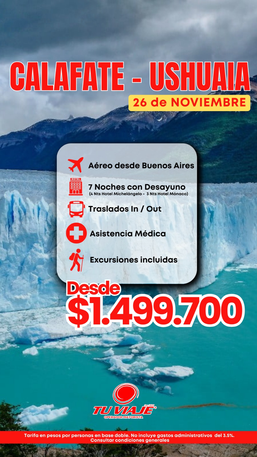 CALAFATE Y USHUAIA - NOVIEMBRE 26 2025