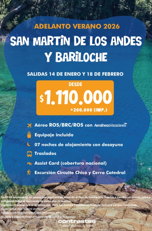 SAN MARTIN Y BARILOCHE DESDE ROSARIO - ENERO 14 Y FEBRERO 18 2026