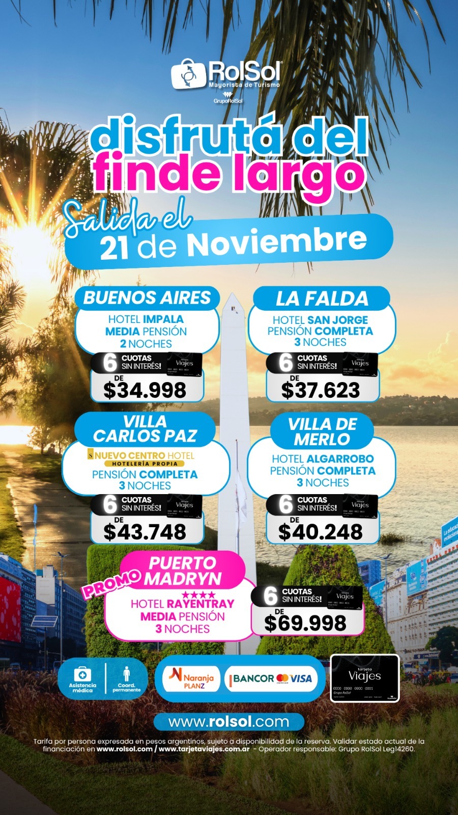 FIN DE SEMANA LARGO ARGENTINA - NOVIEMBRE 20 Y 21 2025