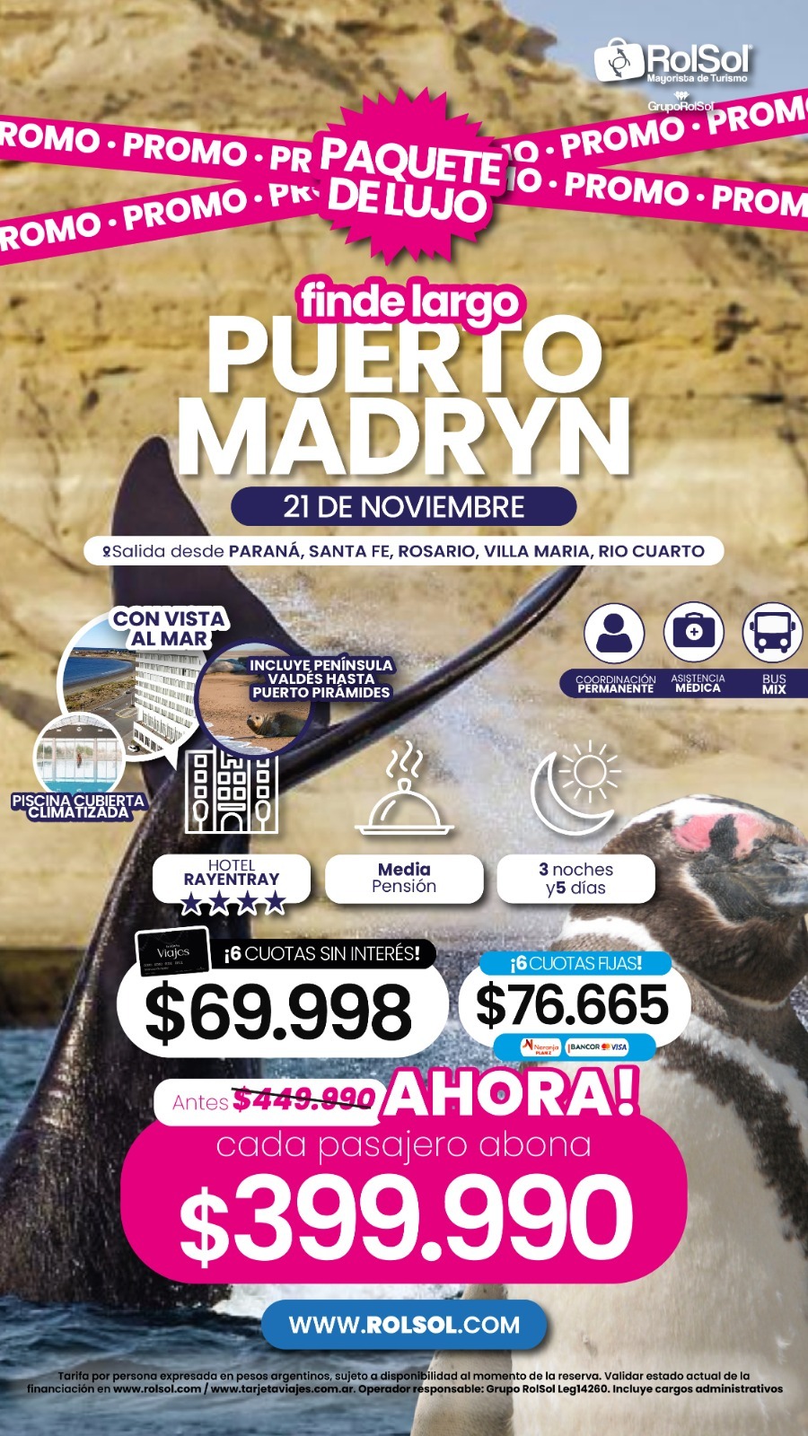 FINDE SEMANA LARGO A PUERTO MADRYN -NOVIEMBRE 21 2025