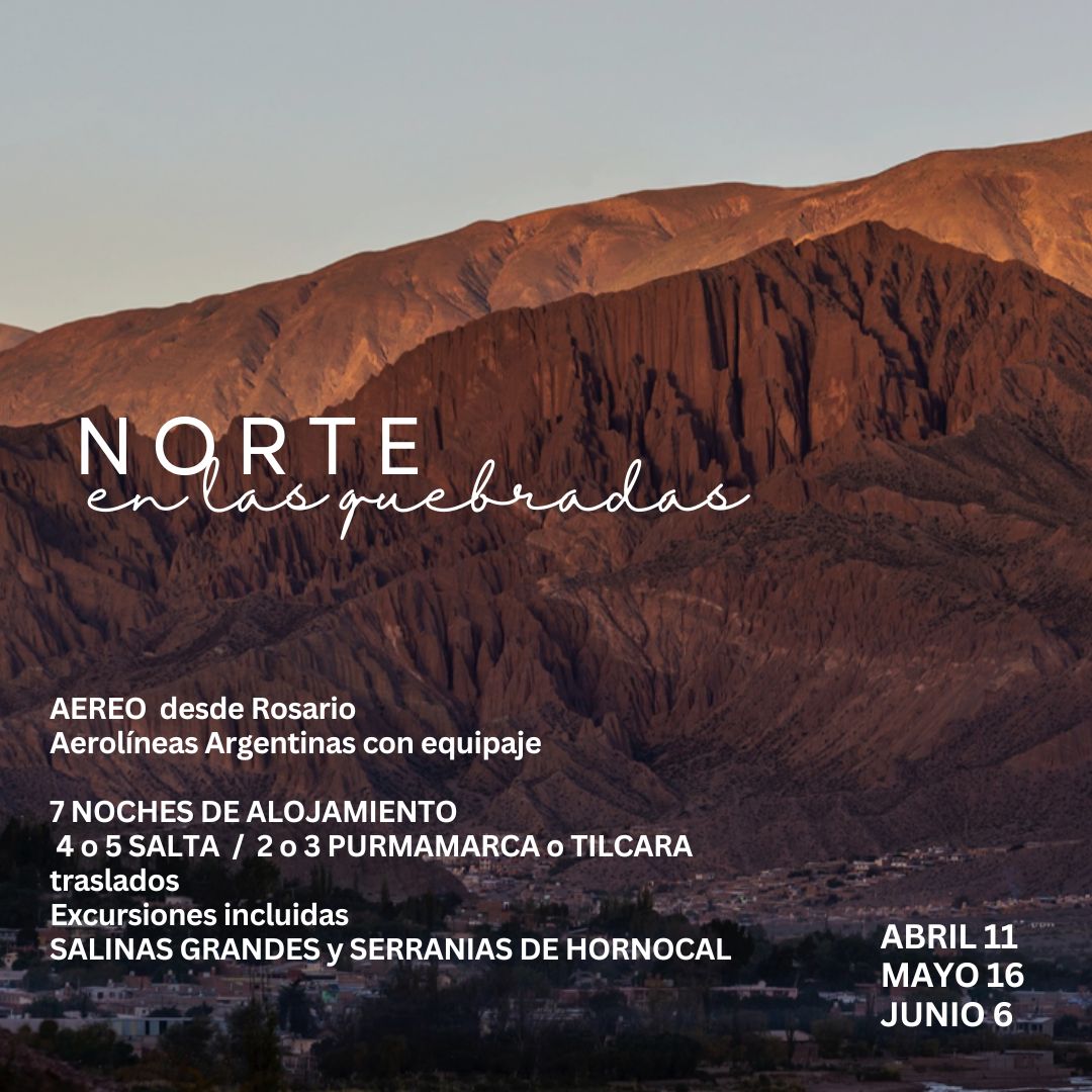 TODAS LAS TARIFAS SON POR PERSONA, BASE DOBLE (SALVO ACLARACIÓN EN CONTRARIO) Y SUJETAS A CAMBIOS SIN PREVIO AVISO.2026 MAYO 16 JUNIO 06 (4 SALTA 3 TILCARA) HOTEL Altos de Balcarce Salta / EL CANDIL Tilcara DWL $ 1.200.000 + 190.000 TRP $ 1.160.000 + 185.000 2026 MAYO 16 JUNIO 06 (4 SALTA 3 PURMAMARCA) HOTEL Altos de Balcarce Salta / HOTEL LA COMARCA Purmamarca DWL $ 1.300.000 + 200.000 TRP $ 1.250.000 + 195.000