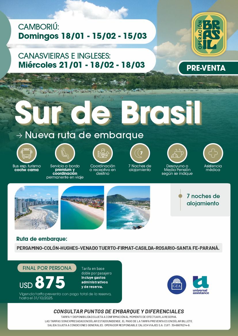 SUR DE BRASIL EN BUS CAMA - ENERO, FEB Y MARZO 2026